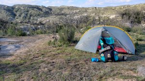 After my nap on top of a bolder I pitched my tent, refiled my water and cooked my dinner. As I was eating a hiker came down the trail and was having an issue finding a spot to lay his bed out. I invited him over and are now currently sharing our camp with him.