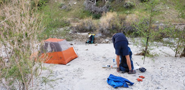Eventually we get to a marked campsite that is a couple miles short of what we wanted to make it to.