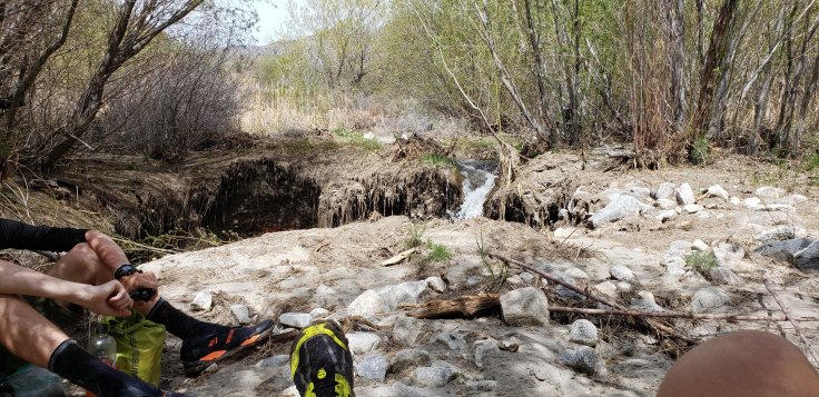 The river was totally washed out. The trail was missing for a majority of this section.
