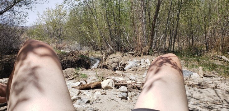 Woke up at sunrise, laid on my pad for another hour, dealing with my thighs spazing and hurting.