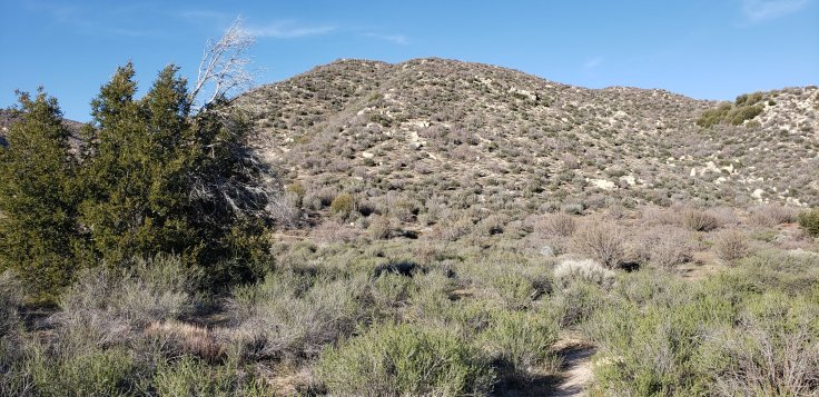 I see the back of someone coming up thru the trees.