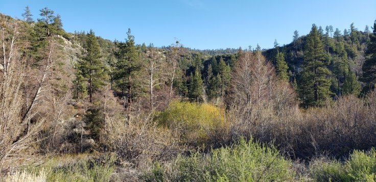 It was about 7 am and the morning was awesome. Pine trees, snow and a beautiful view were my office today.